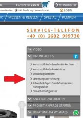 In unserem Aufklappmenue "ONLINE-TOOLS", direkt neben der Artikeldarstellung, finden Sie einen Link zur Strömungsberechnung von Rohrsystemen aus Kunststoff.